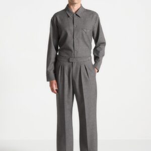 Regular Fit Houndstooth Wool-Blend Trousers – Brown