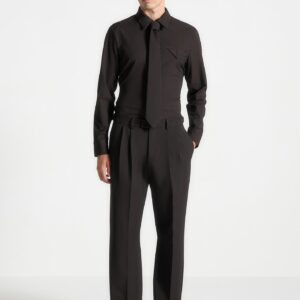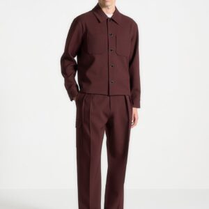 Relaxed Fit Twill Pocket Trousers – Wine Red