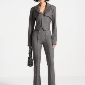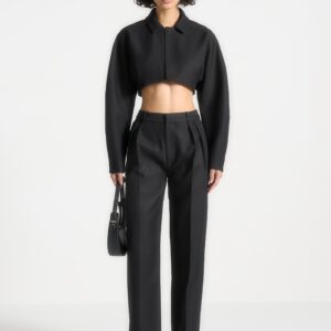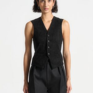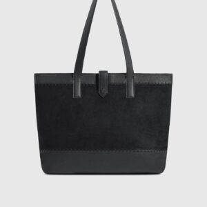 Suede & Pebbled Leather Whipstitch Tote Bag – Black