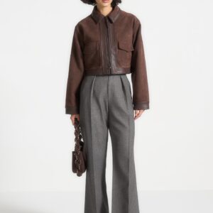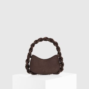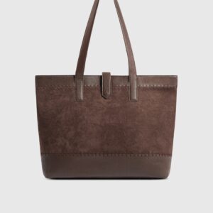 Suede & Pebbled Leather Whipstitch Tote Bag – Brown