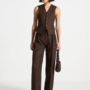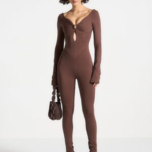 Twisted Bust Off Shoulder Jumpsuit – Brown