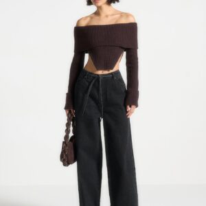 Zip Detail Knit Bandeau Top – Brown