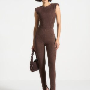 Wide Shoulder Suede Bodysuit – Brown