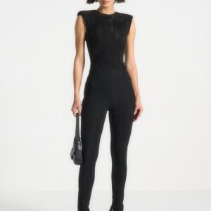 Wide Shoulder Suede Bodysuit – Black