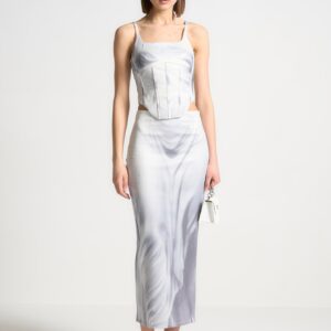 Satin Renaissance Body Print Corset Top – Off White