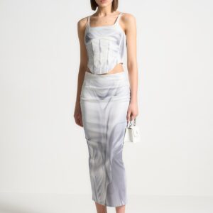 Satin Renaissance Body Print Midaxi Skirt – Off White