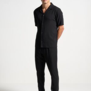 Seersucker Tapered Trousers – Black
