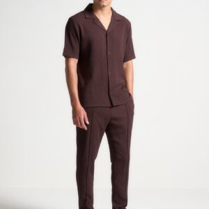 Seersucker Tapered Trousers – Brown