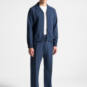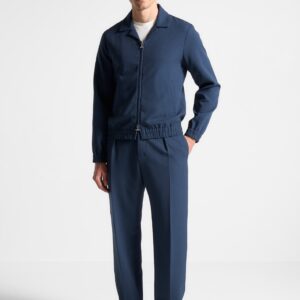 Relaxed Fit Hatched Pleated Tailored Trousers – Blue