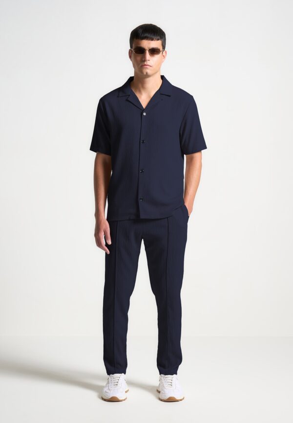 Expertly crafted from breathable Seersucker fabric, these Navy Seersucker Tailored Trousers offer both comfort and style. With a tailored fit and an elasticated waistband, they provide a perfect balance of functionality and fashion. Create an unbeatable ensemble this season by pairing with the Navy Seersucker Short Sleeve Shirt.