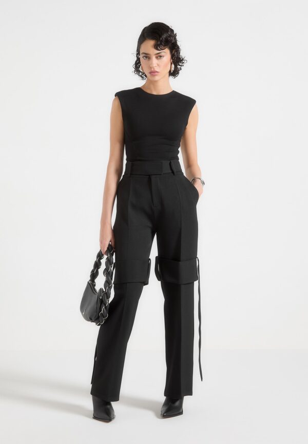Tailored Belted Strap Detail Trousers – Black