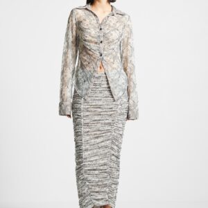 Model is 5’8″, 32.5″ Bust, 24″ Waist, 32″ High Hip, 37.5″ Low Hip and Wears UK Size 6