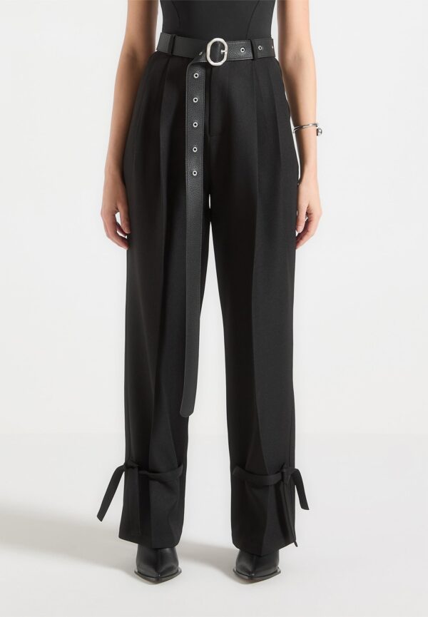 Tailored Trousers with Oversized Belt and Ankle Ties – Black