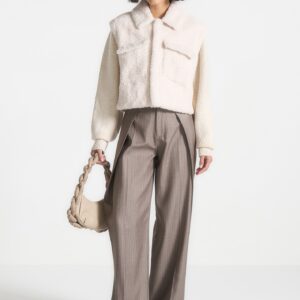 Plush Jacket With Knitted Sleeves – Cream