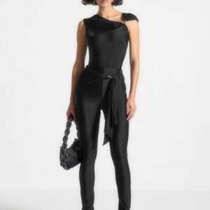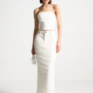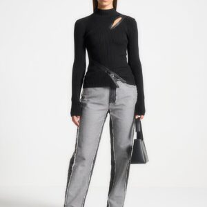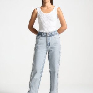 Denim Effect Tacked Fit and Flare Jeans – Brown/White